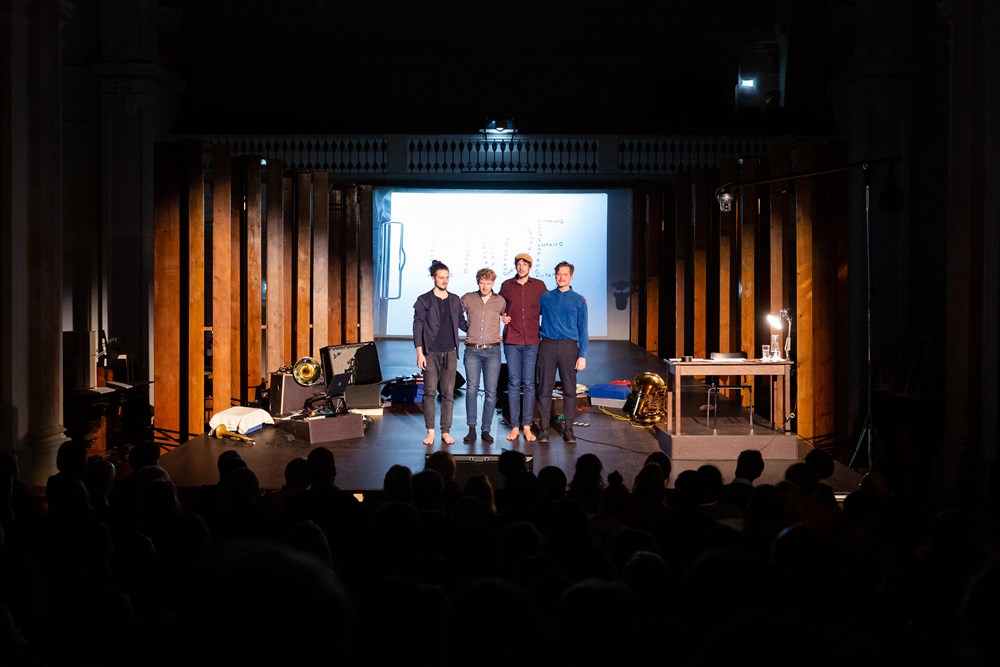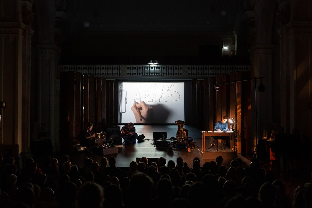 Im Dialog mit drei Musikern aus dem »STEGREIF.orchester« Berlin, das mit seinen Brahms- oder Beethoven-Performances die Klassikszene in Begeisterung versetzt. Eine zauberhaft-minimalistische Ko-Produktion von Strich und Ton. Aus der verheißungsvollen Leere des weißen Blatts und der Stille des Raums.