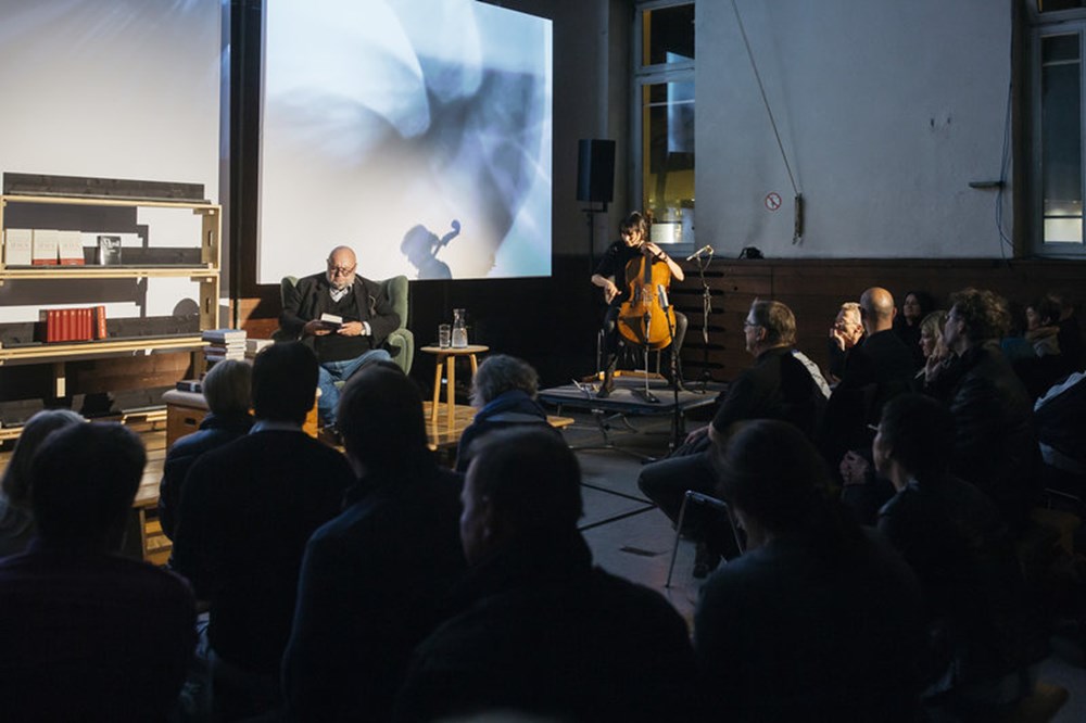 Der renommierte österreichische Essayist Franz Schuh improvisierte über das Thema. Er bewundert, kommentiert, stellt Nachbarschaften her, Wahlverwandtschaften, reiht ein, verbannt, rückt in die Mitte. Auf der Bühne entsteht die physische Spiegelung eines Reflexionsprozesses. Performance als Bildhauerei mit Literatur.