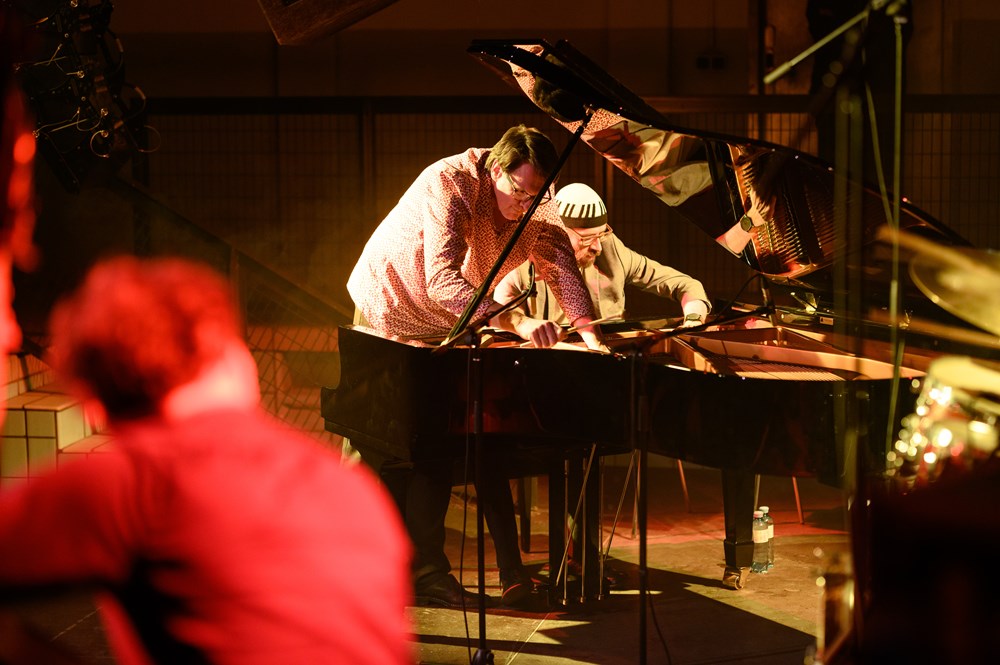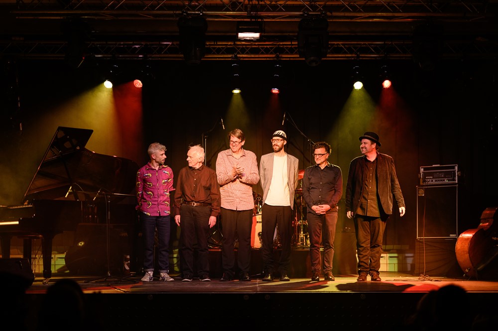 Erstaufführung 21. November 2019, Montforter Zwischentöne mit Pierre Favre und Chris Jaeger am Schlagzeug, Georg Breinschmid und Heiri Känzig am Kontrabass, Peter Madsen und David Helbock am Klavier.