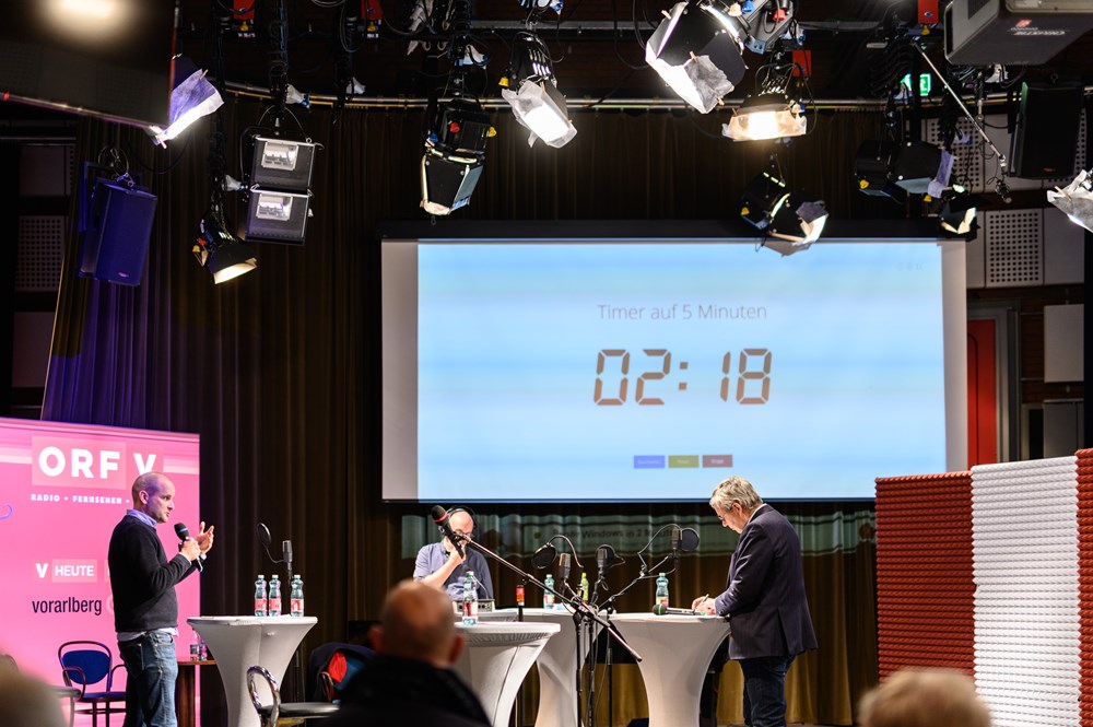 Ein Debattenformat mit pointierten Kontroversen zu den großen Streitfragen im Land wie Betriebserweiterungen in der Landesgrünzone oder Gemeinsame Schule versus Trennung der Kinder mit 10 Jahren. Pro und Kontra zwischen Altlandesstatthalter Karl-Heinz Rüdisser und Martin Strele, Verein Bodenfreiheit sowie Wolfgang Türtscher, Lehrervertreter im ÖAAB, versus Harald Walser, ehem. Nationalrat.