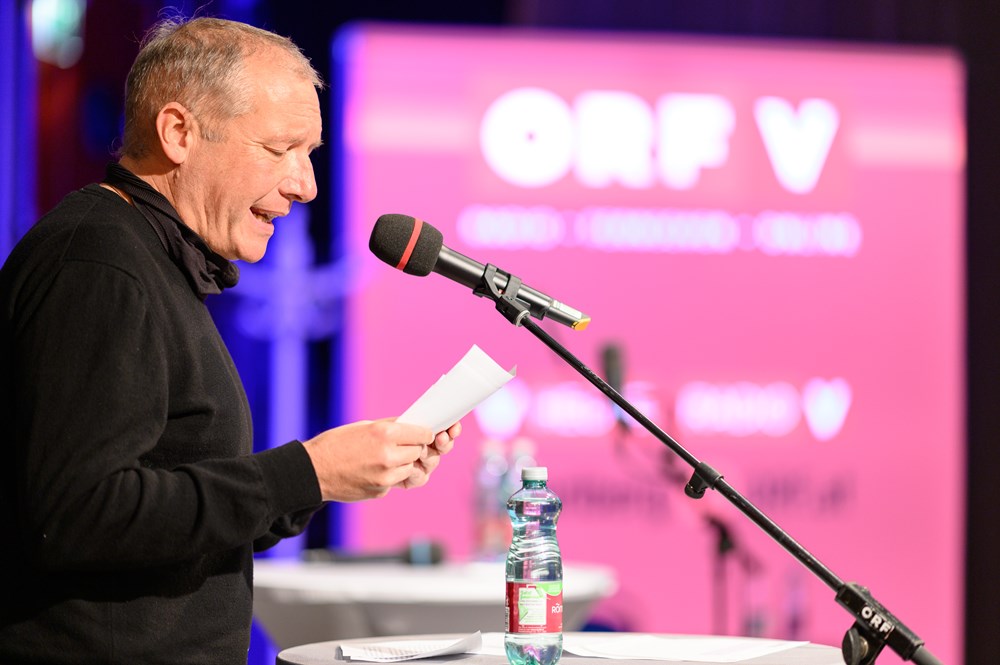 Utopische Nachrichten zur nicht immer vollen Stunde dichteten und las der Vorarlberger Autor und Kabarettist Stefan Vögel.